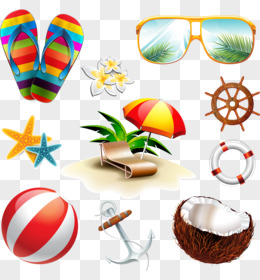 夏天 沙滩 summer 海岸 海星 帆板 冲浪 矢量图