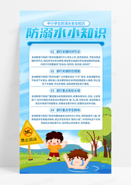 蓝色插画夏天夏季学生防溺水小知识防溺水手机文案海报