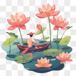 夏天人和植物荷花免抠元素