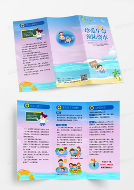 珍惜生命蓝色渐变卡通珍爱生命预防溺水安全手册三折页防溺水三折页