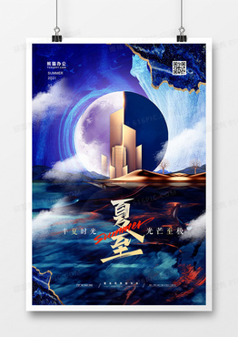 中国风鎏金二十四节气夏至房地产宣传海报设计