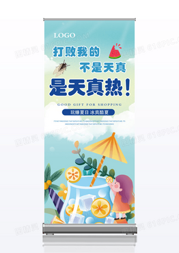 手绘卡通女孩夏天喝绿豆汤解暑免抠元素