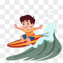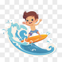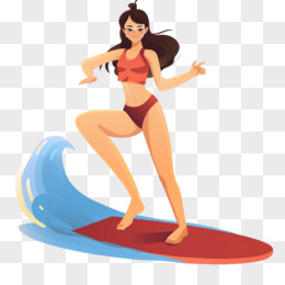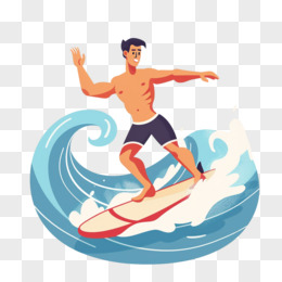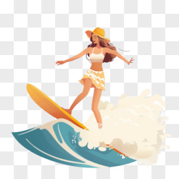 插画人物冲浪免抠元素