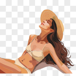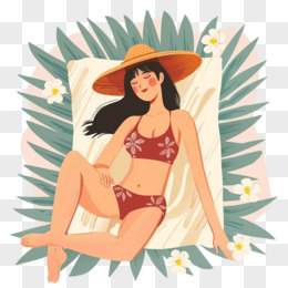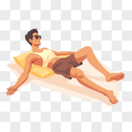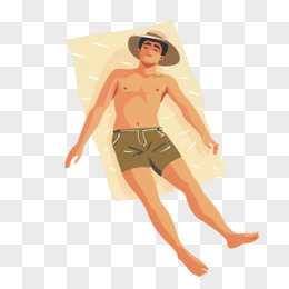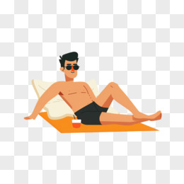 人物晒日光浴插画免抠元素