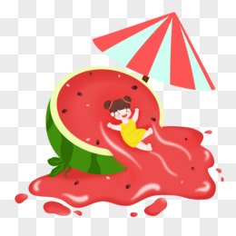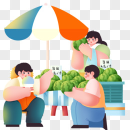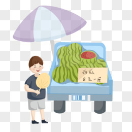 手绘创意插画之西瓜摊位西瓜买场景元素