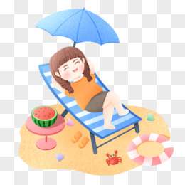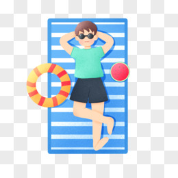 可爱卡通风格夏日带着游泳圈的男孩免抠元素