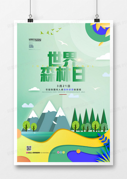 创意剪纸风世界森林日海报