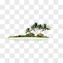 手绘夏季海滩椰子树素材