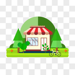 手绘小清新夏天房屋小卖部元素