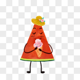 手绘水彩风夏天西瓜表情包之吃冰淇淋元素
