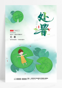 荷叶夏天二十四节气处暑宣传海报