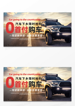 黄色汽车下乡限时抢购0首付购车展板
