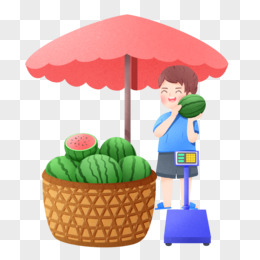 手绘创意插画之西瓜摊位西瓜买场景元素