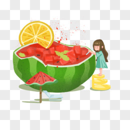 手绘创意女孩吃柠檬西瓜素材