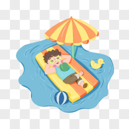 卡通手绘免抠大西瓜泳池免抠元素