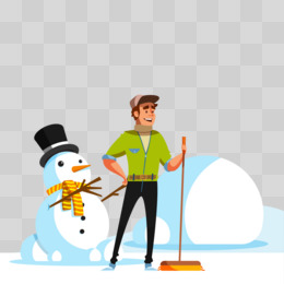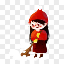 手绘卡通男孩冬天扫雪场景插画免抠元素
