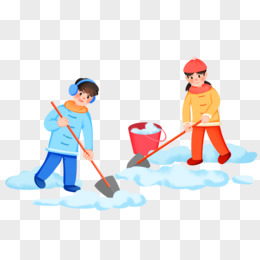 手绘卡通小伙伴们铲雪扫雪免抠素材