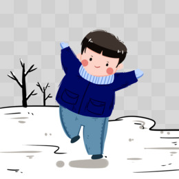 手绘冬天雪地堆雪人