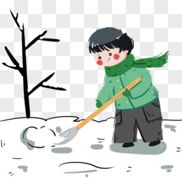 冬季铲雪的男孩