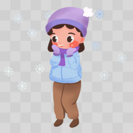 卡通手绘冬季下雪小女孩裹紧围巾免抠元素