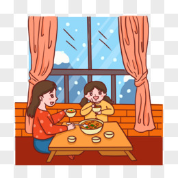 手绘卡通炕上吃饭免抠元素