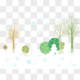 手绘冬天森林树木白雪覆盖卡通矢量免抠元素