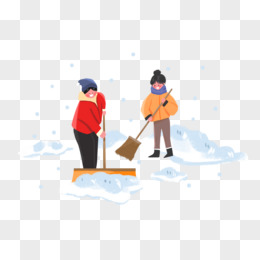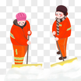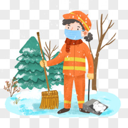 手绘卡通环卫工人冬天扫雪场景插画免抠元素