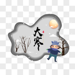 手绘卡通大雪节气孩子户外堆雪人场景素材