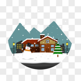手绘卡通下雪天积雪的房屋素材