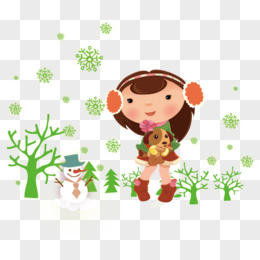 冬季可爱女孩玩耍插画