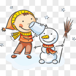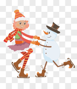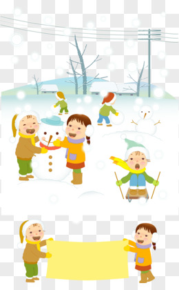 手绘卡通下雪天雪天滑雪素材