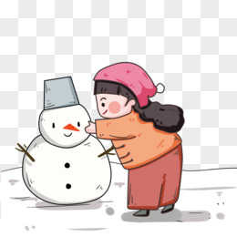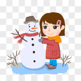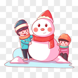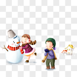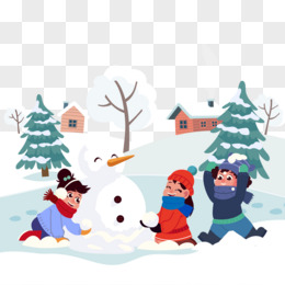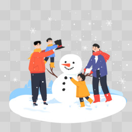 雪地中哥哥带着弟弟妹妹堆雪人场景元素