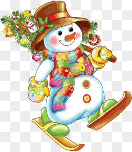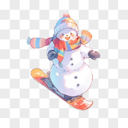 手绘雪人滑雪免抠元素