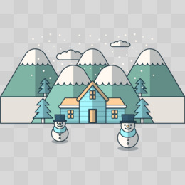 卡通雪人雪山矢量