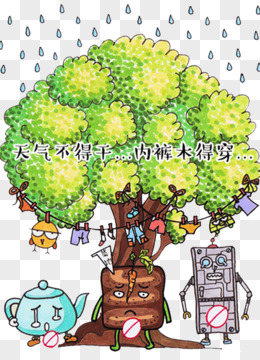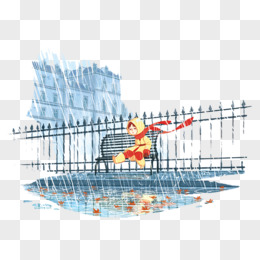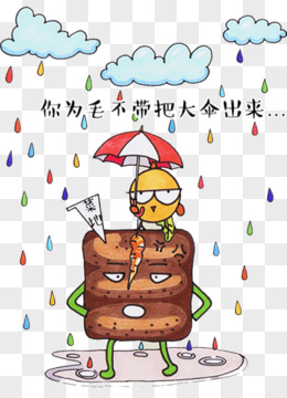 手绘卡通谷雨下雨躲雨场景免抠素材