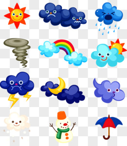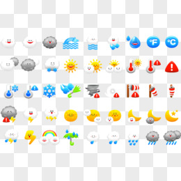 一组矢量膨胀风3D立体可爱表情天气贴纸合集元素