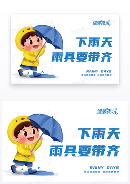 下雨天穿着黄色雨衣开心玩水女孩卡通元素