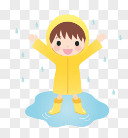 卡通手绘女孩雨天打伞踩在泥地里免抠素材