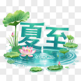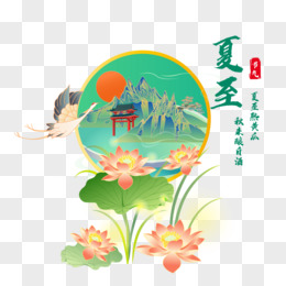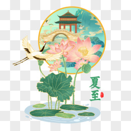 手绘池塘锦鲤和荷花夏季国潮微景观素材