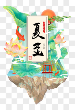 二十四节气夏至夏季西瓜荷叶荷塘合成元素