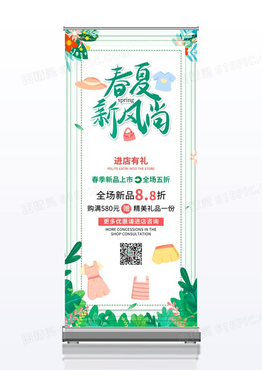 绿色新品春款折扣易拉宝展架服装鞋帽包包优惠促销活动童装展架