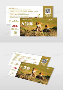 棕黄色 简约大气 卡通 写真动物 动物园门票 动物园入场券