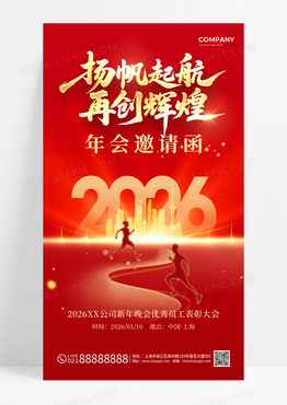 红色2026携手并肩共创辉煌马年年会中国风海报