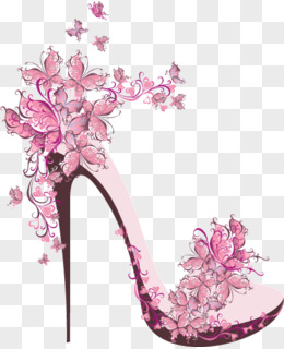 手绘插画风粉色渐变蝴蝶结高跟鞋元素