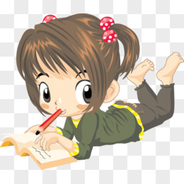 卡通小女孩趴着写字看书元素