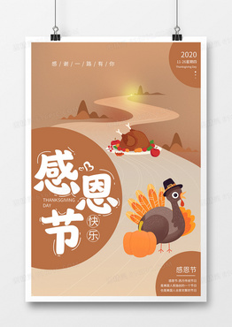 手绘感恩节主题之女孩和玩具兔子玩耍
