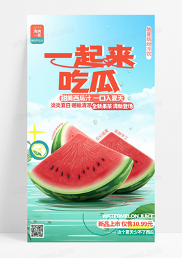 创意时尚卡通鲜榨果汁西瓜汁水果促销手机海报AI