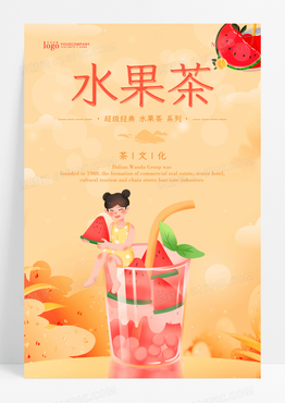 橙黄色卡通水果茶海报设计