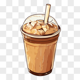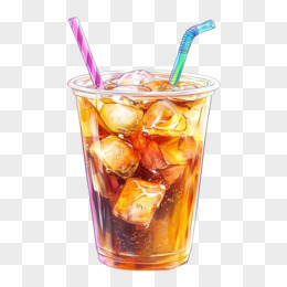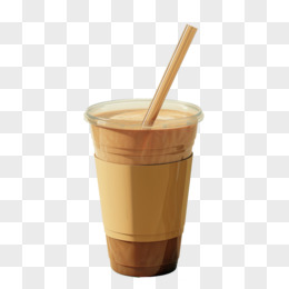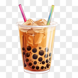 3D卡通一杯奶茶里放着一根吸管免抠元素