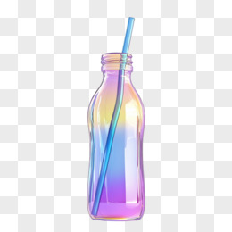 3D卡通一杯水里放着一根黄色吸管免抠元素